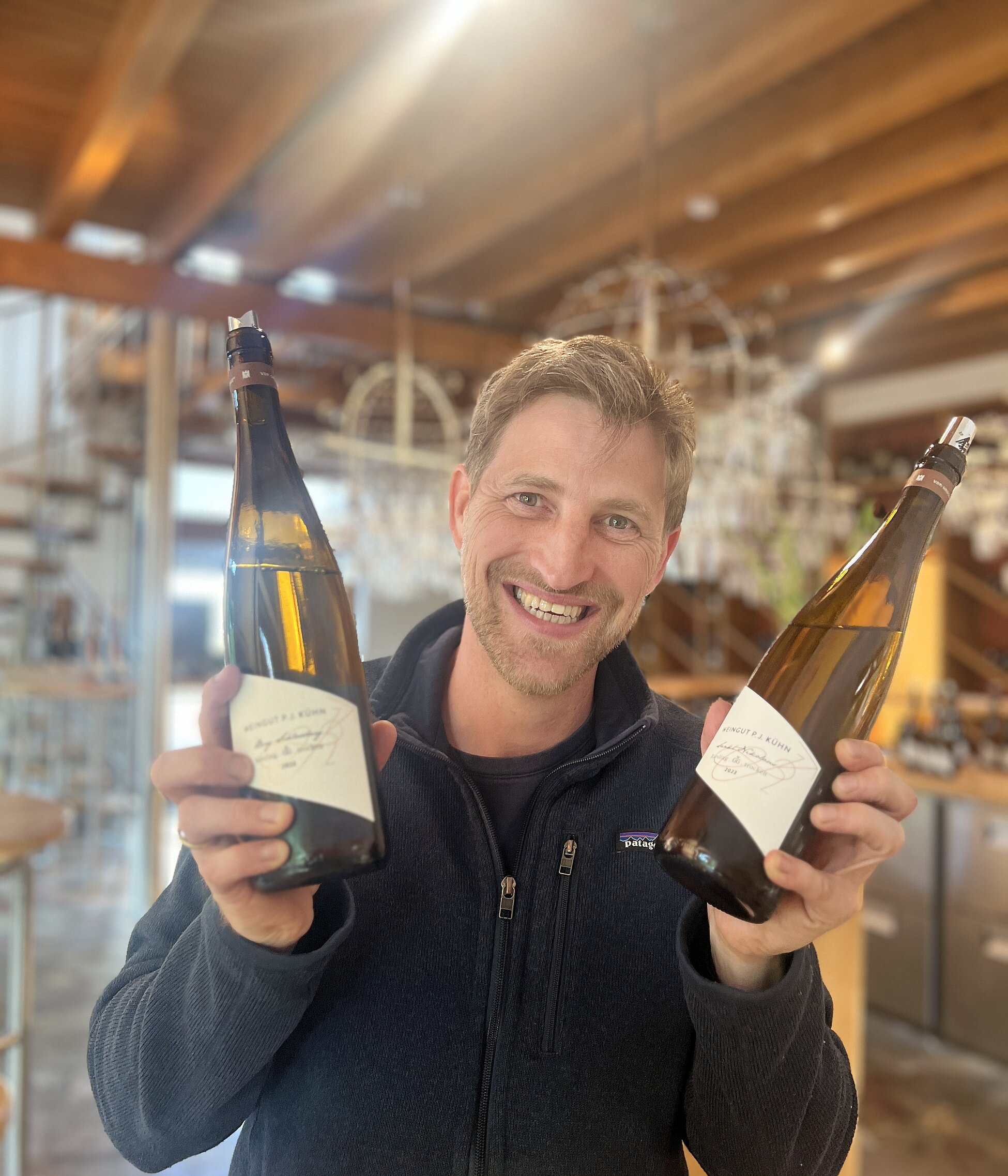 Peter Bernhard Kühn hat allen Grund zur Freude: Er steht mit seinem Schlossberg 2023 und 2024 (Fassprobe) sowie dem St. Nikolaus 2023 und 2024 (Fassprobe) erneut ganz oben auf dem Treppchen. Glückwunsch!