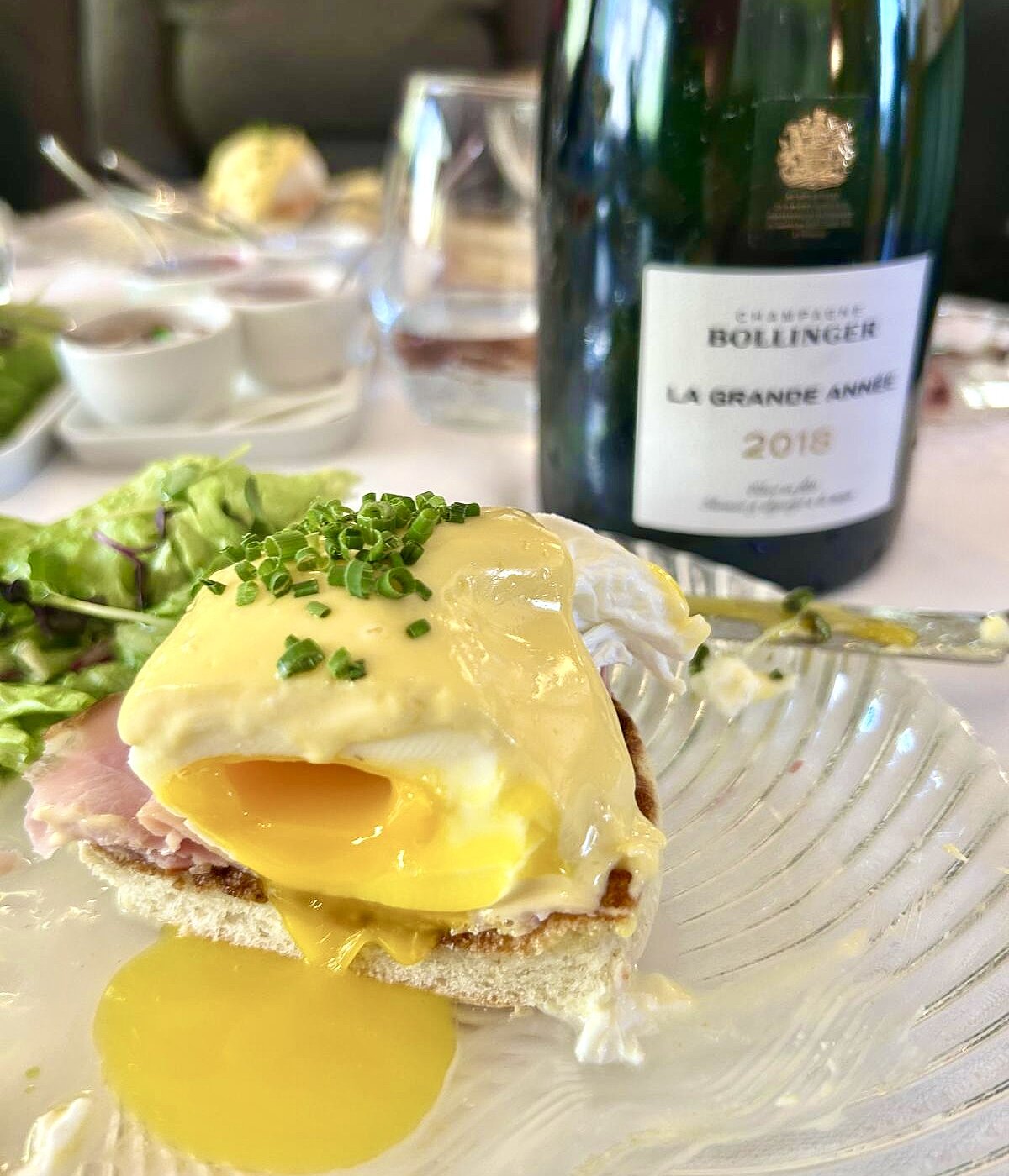 Im Caféhaus Siesmayer in Frankfurt wurde ein vorzügliches Eggs Benedict serviert, das in Kombination mit den verschiedenen Champagnern von Bollinger besonders überzeugte.