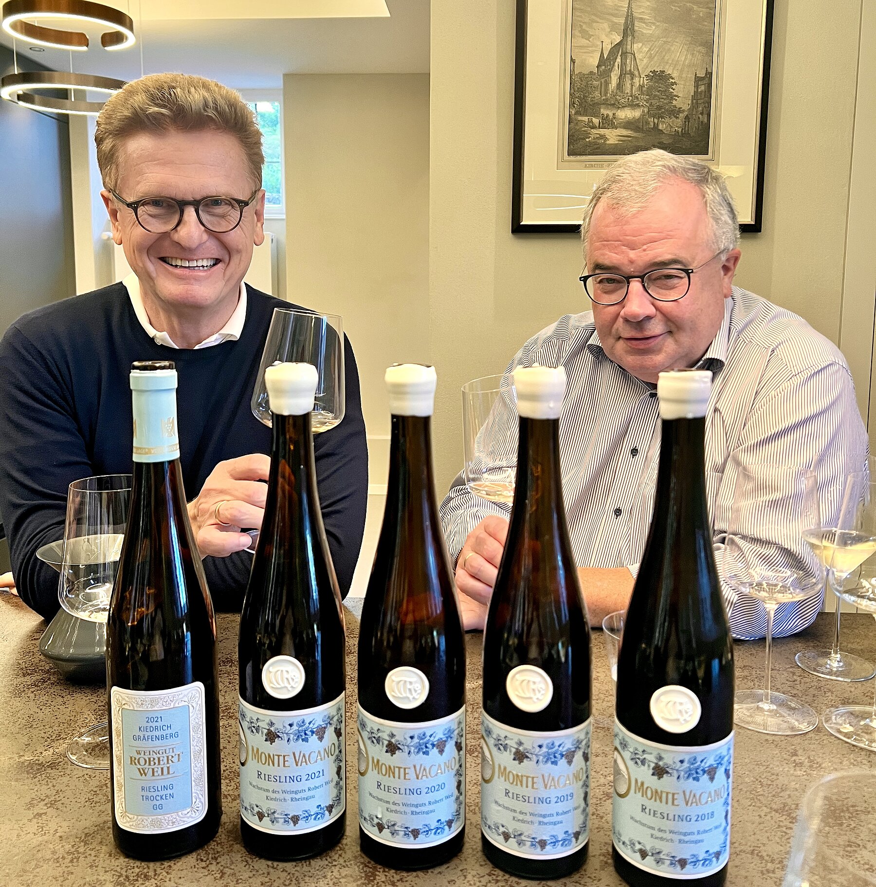 So liegt 2024 für mich über 2008 und auch über den 2021ern. An 2008 erinnere ich mich noch sehr gut. Es war mein erstes Jahr als Chefverkoster für Gault Millau im Rheingau. Danach ließ ich mir die Zahnhälse versiegeln. Klar, heute strahlen einige der Top-Weine wie etwa der 2008er Berg Schlossberg von Theresa Breuer. In der Breite war 2008 aber unreifer und ungnädiger in der Säure. 2024 präsentiert sich insgesamt auch besser als den oft zitierten 2021er-Jahrgang, dessen Phenolik und Säurestruktur ich als härter und unbalancierter in Erinnerung habe. „2024 war ein Jahr mit sehr guter Wasserversorgung. Das hat den Weinen nochmal mehr „Schub“ und Aufspiel gegenüber dem 2021er gegeben“, bestätigt Klaus Peter Keller diesen Eindruck. Auch sei der Anteil an Äpfelsäure in 2021 höher gewesen. Und auch Wilhelm Weil findet, dass man bei den 2024ern aufgrund „des hohen Extraktes oft viel Wein im Maul hat.“
